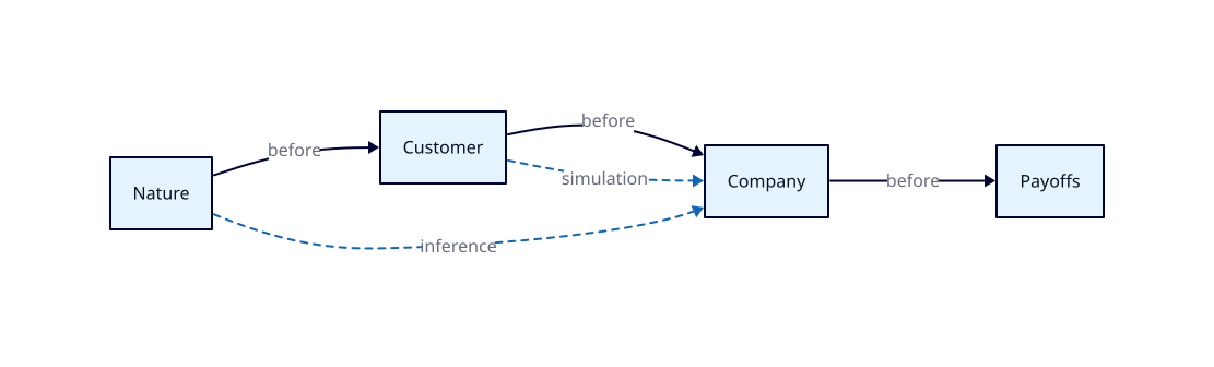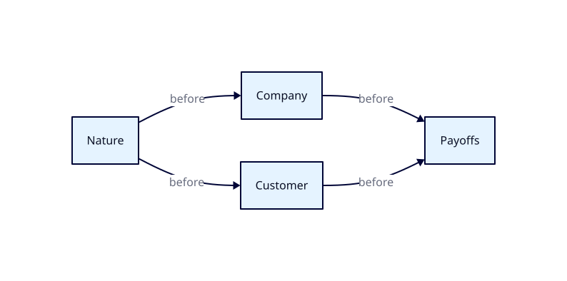 - The Company and its Customer choose their actions simultaneously, knowing the initial probability distribution of Nature's choices but not the one it made.