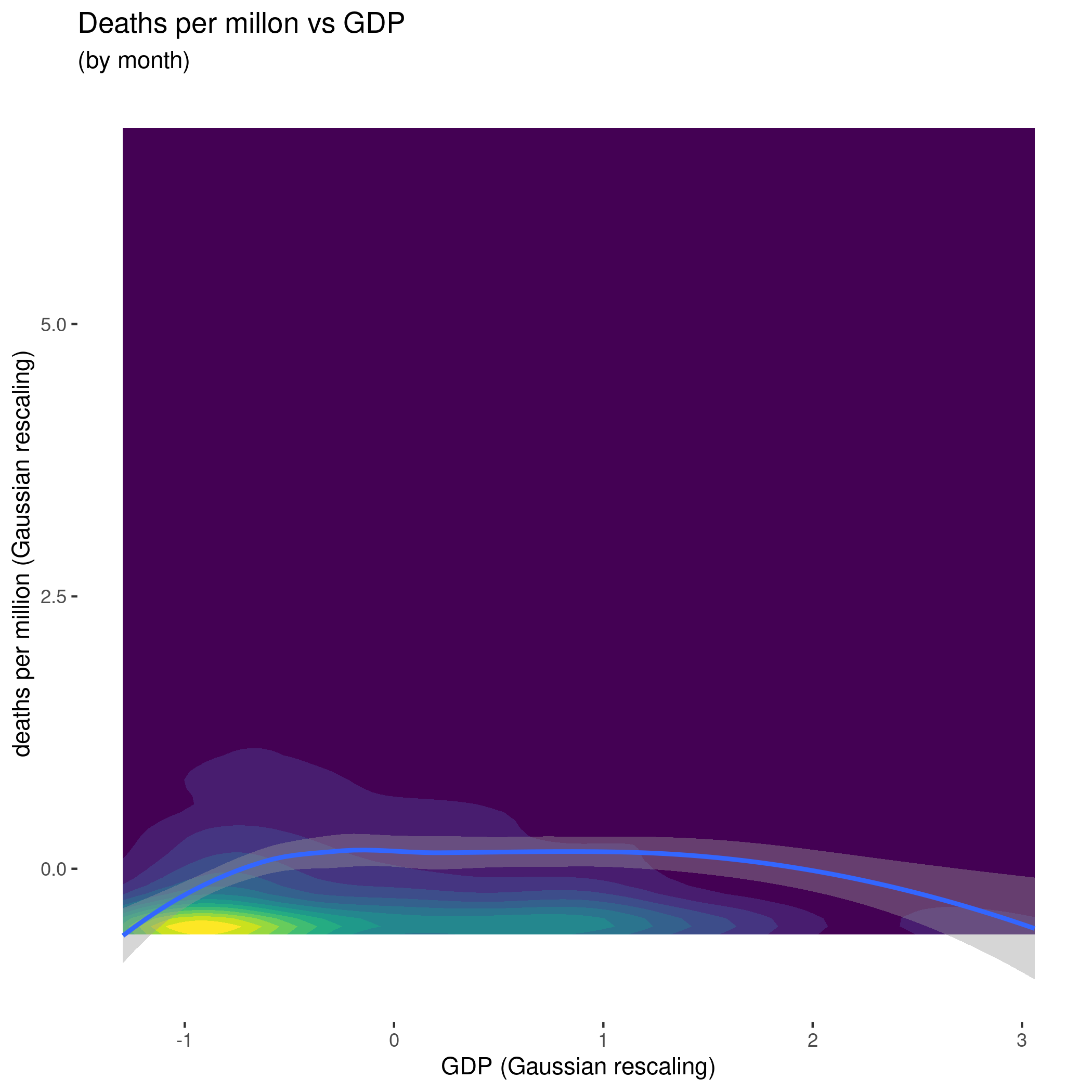 Looking at the impact of GDP alone, it's interesting to note that, empirically, middle-income countries have done worse than the richest and poorest countries โ although it's not really a strong effect. It would be important to understand why (is it a matter of population density, social mores, resistance to centralized measures, the relative importance of cheaper public health preventive measures, something else?).