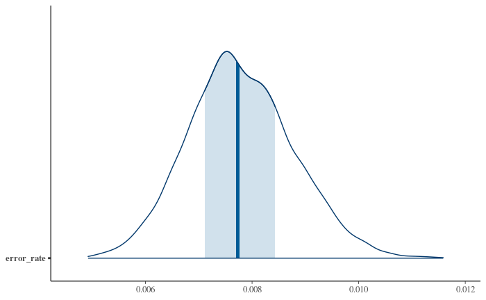 As a bonus, we also get a reasonable estimate of the actual error rate, which I set up as 1% while generating the data; for much lower error rates this discussion is moot, but in a lot of projects I've had to deal with much worse:
