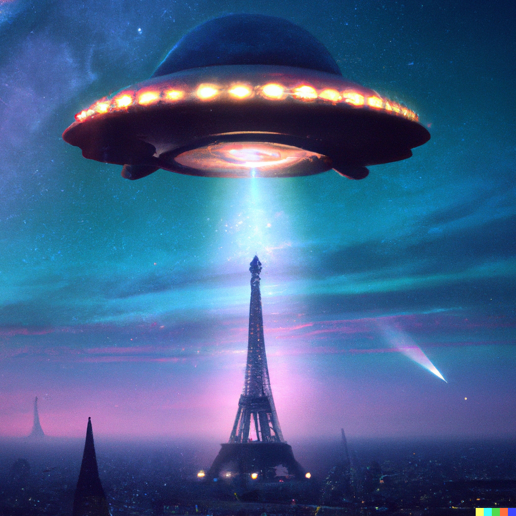 By the way, this post's image was created by DALL-E, with the prompt A photo of a flying saucer over the Eiffel Tower at night, digital art. It certainly is.