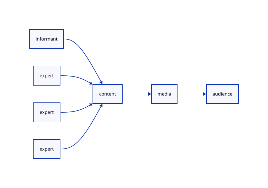The expertise architecture of journalism, at least in its ideal Platonic form, looks a bit like this:
